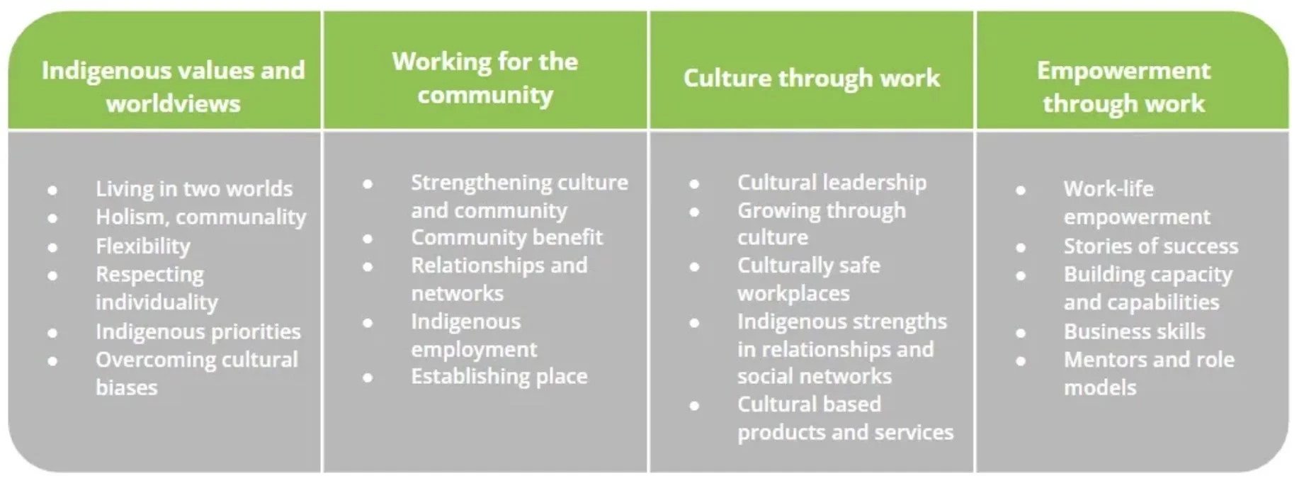 The most important themes for Indigenous businesses are in the table below.